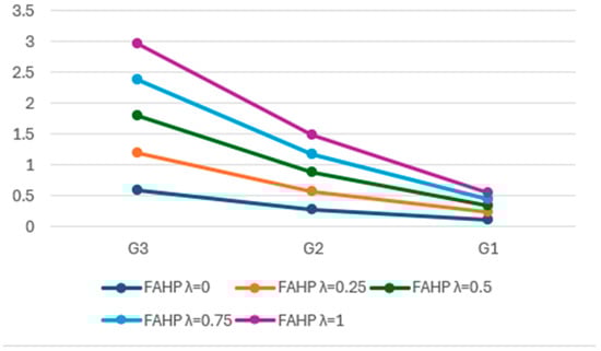 The vertically constituted hierarchical structure with few levels of organization, with the most significant component (goal) at level 1, contributing criteria, sub-criteria, and sub-sub-criteria at the following levels and, eventually, alternatives at the last level, is built. The evaluation matrices with pairwise comparisons are conducted for all considered preference criteria and sub-criteria, where = (). Corresponding score indices, linguistic measures, their meaning, and spherical fuzzy sets are presented in Table 2. The linguistic measure E corresponding to is equal (0.5, 0.5, 0.5). The aggregation of different experts’ opinions is calculated by the averaging method, based on the corresponding linguistic assessments of (), , rounding to the nearest integer.