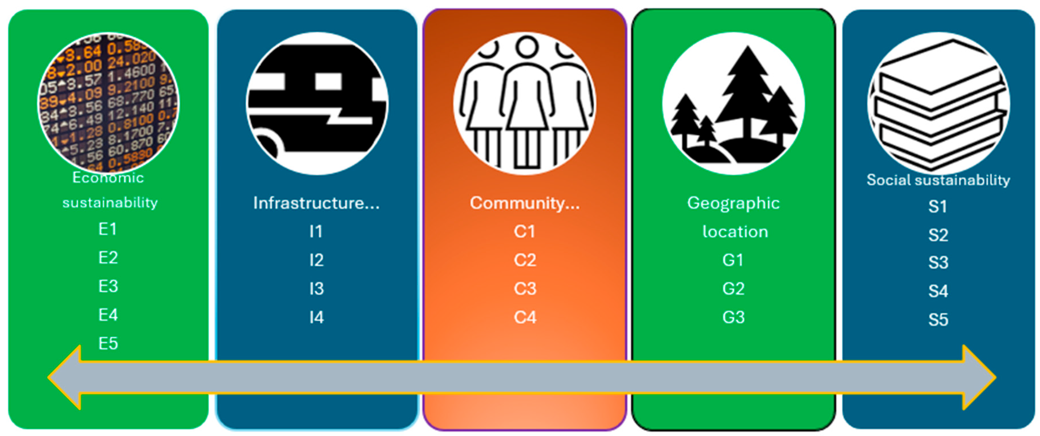 Speaking of community participation and resource management, the AHP algorithm yields two pairs of equally ranked sub-criteria: active participation of the local community and encouraging entrepreneurship and startups dividing the first position; and ensuring public utility services and preservation of tradition and cultural heritage on the next two positions (see