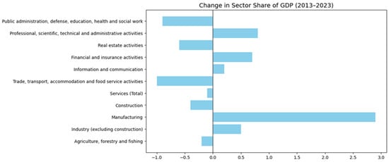 Change in sectoral share of Gross Domestic Product (GDP) in Greece, 2013–2023 (Authors’ scheme; see Supplementary Material S1).