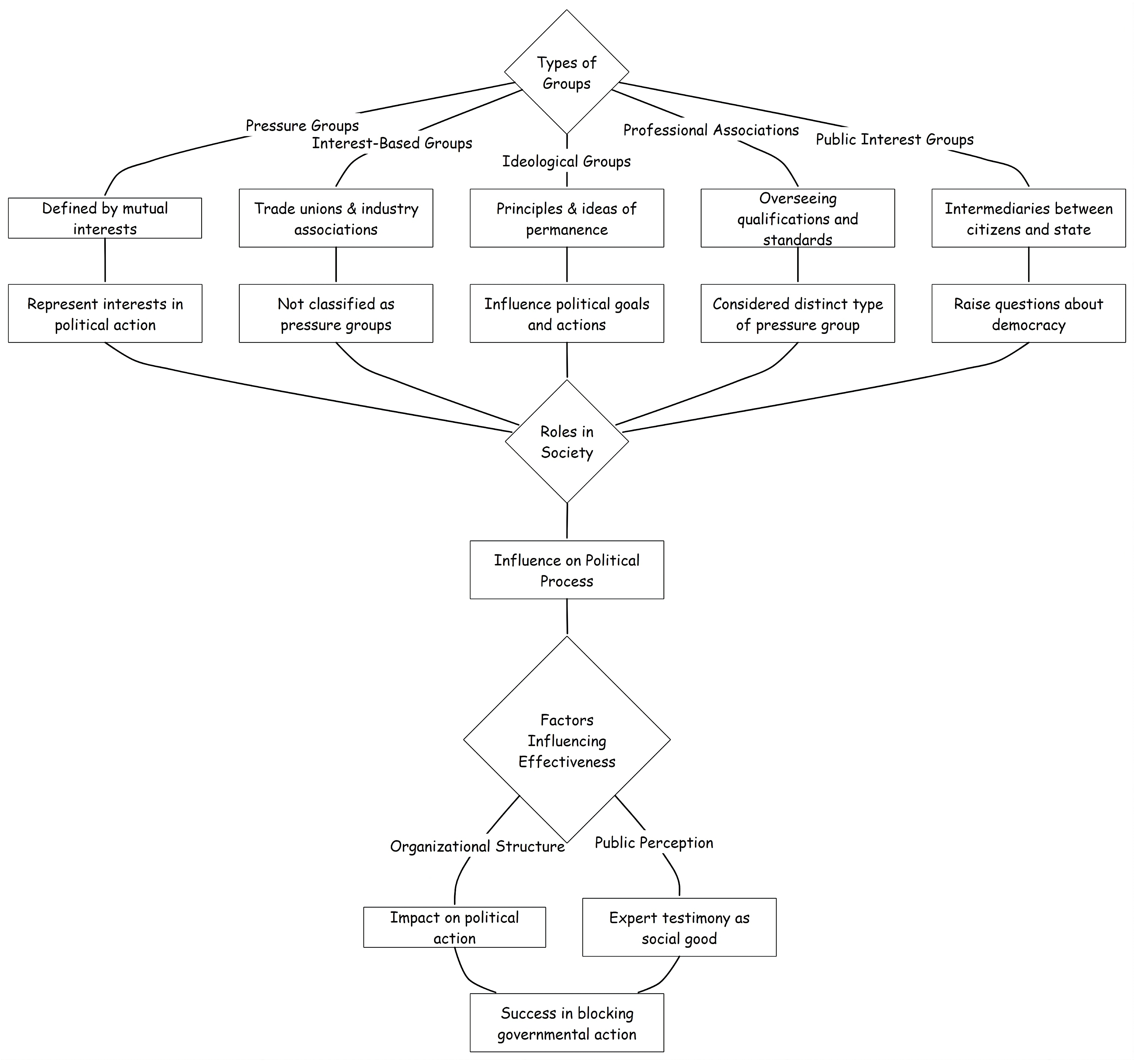 Following the examination of ideological groups, whose influence is grounded in belief systems and value-driven agendas, the discussion now turns to institutionalized pressure groups that derive their power from formal organization and professional authority. Among these, professional associations represent a distinctive category characterized by their structured governance, specialized knowledge, and recognized social legitimacy. Unlike ideological groups that mobilize around principles, professional associations operate through expertise and institutional credibility, often acting as intermediaries between the state and specific professions. Their influence extends beyond the protection of member interests to shaping legislation, regulation, and public policy in ways that reflect the authority of professional standards. The following discussion explores how such associations, through their institutionalized structure and technical expertise, often exercise greater political leverage than other types of pressure groups. A professional association is a formal organization responsible for overseeing the professional qualifications and standards of members and their practice in their vocations. Widely recognized as custodians of the public standards of a profession, they also possess considerable political and social power. The very different political capabilities of the various professional associations are explained by differences in the length and organization of their professional cultures and business expertise. Professional associations are generally more successful than other pressure groups in blocking governmental action. A theory of the knowledge, esteem, and identity advantages of professional associations over otherwise equally placed pressure groups is postulated. The theory is to be applied to the example cases of the American Medical Association, the American Bar Association, and the American Institute of Accountants.