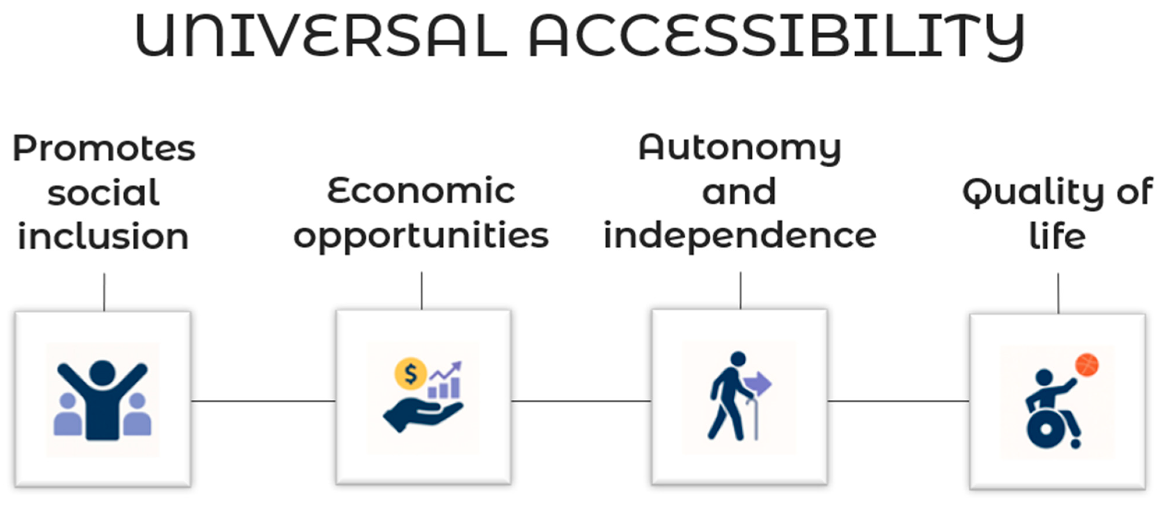 UA represents the integration of all people regardless of their disabilities. This concept brings benefits to people from all backgrounds, from children to the elderly, both men and women. UA emanates social transformation that creates inclusive environments and reduces structural inequalities. The benefits generated by this concept are significant and cover various perspectives such as the social sphere, the improvement of quality of life, efficiency and resource savings, and the positive impact on sustainability [