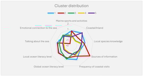 Objective 3: To identify distinct perceptual profiles among students through K-means clustering based on emotional connection, experiential engagement (coastal visits, marine activities), OL (global and local), and social dimensions (information sources, marine conversations).