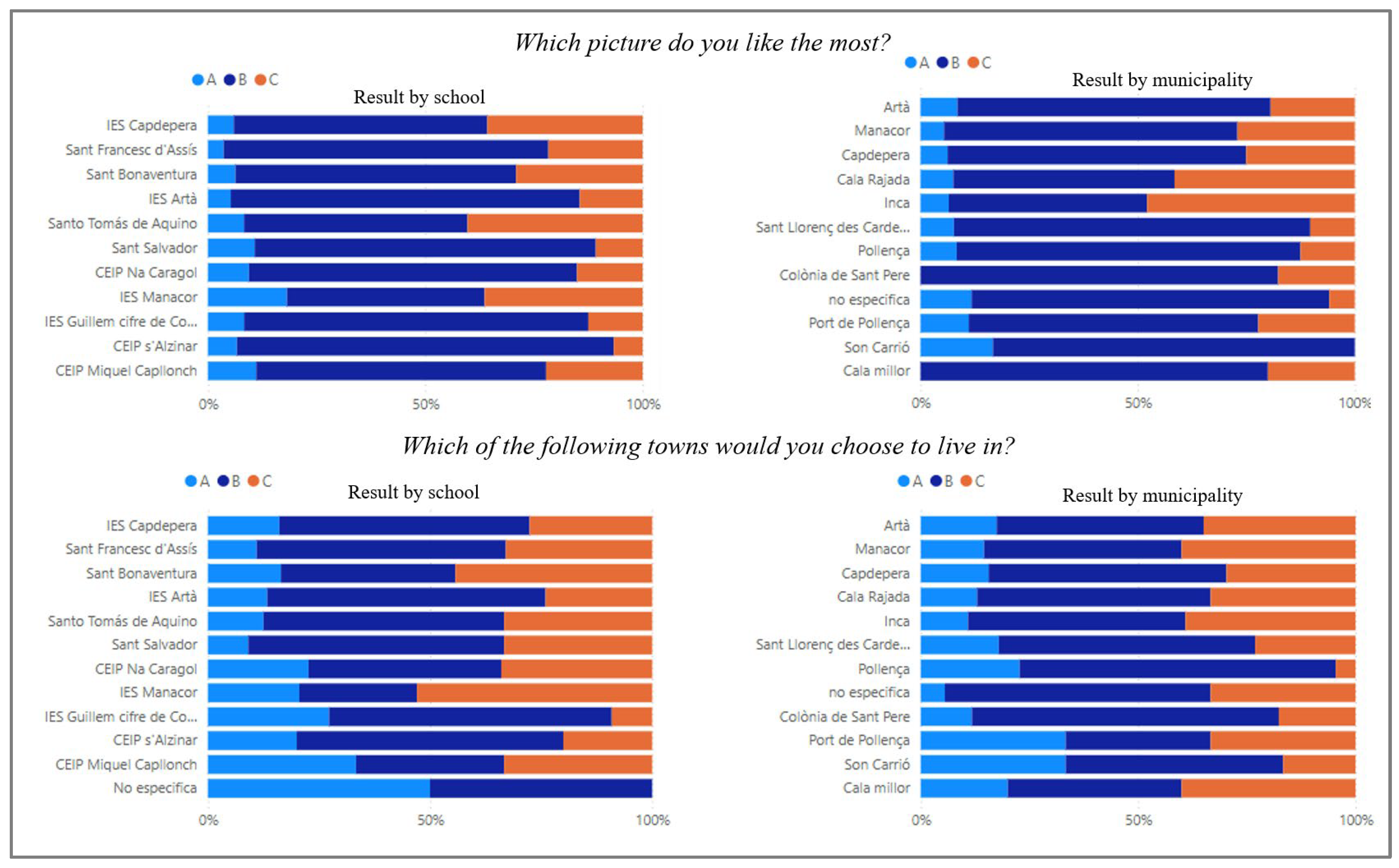 | Capdepera | 64.29% | 2.38% | 27.38% | 5.95% | 2.6 |