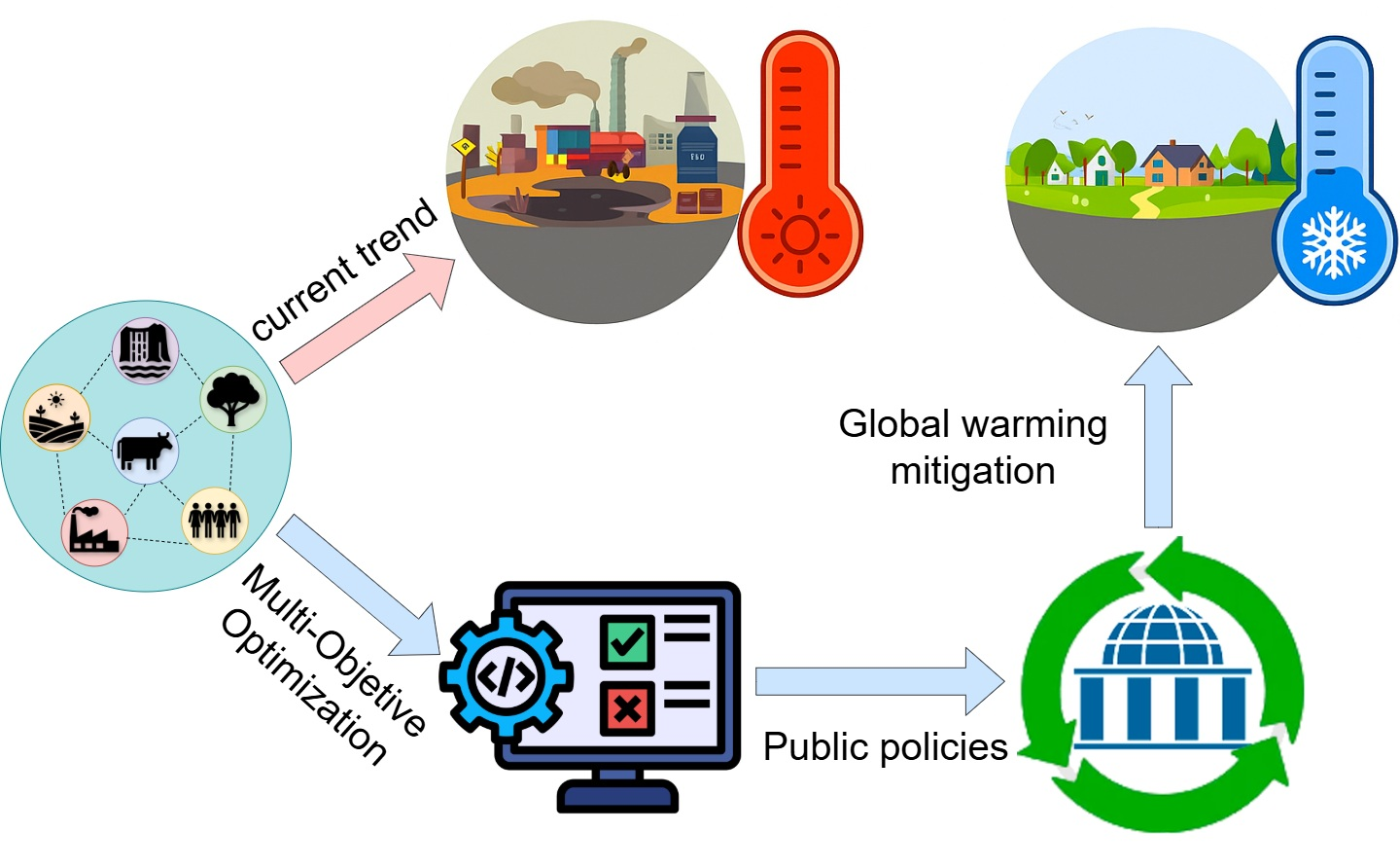 Multi-Objective Optimization of Socio-Ecological Systems for Global Warming Mitigation