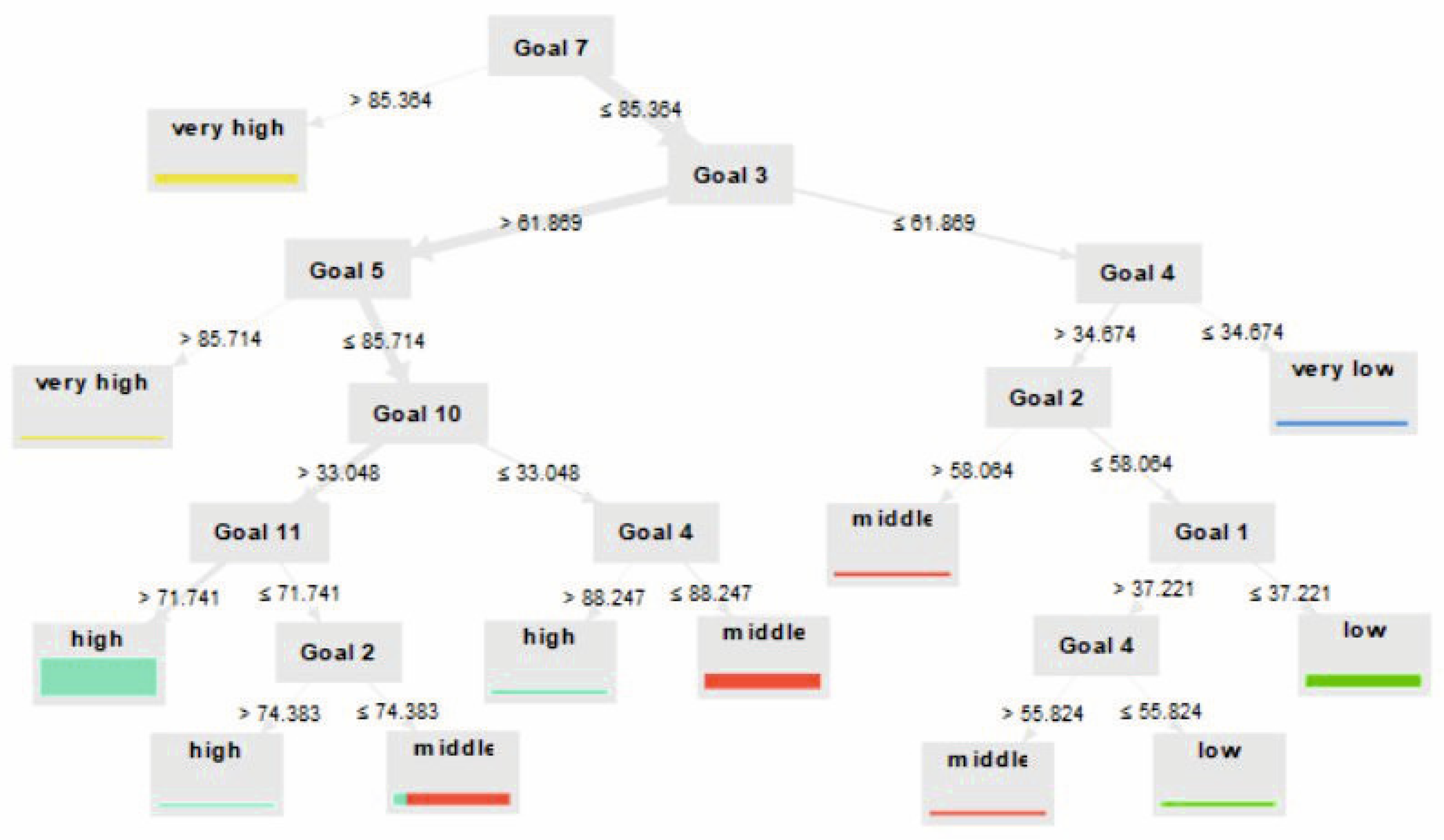 E. Ordonez-Ponce examined the impact of Sustainable Development Goals on sustainable development trends following their introduction in 2015. The researcher applied nonparametric statistical tests and compared quantitative assessments of trends before and after 2015. Results indicated that the majority of SDGs did not demonstrate substantial improvement following their introduction. Furthermore, sustainable development indicators remain poor in developing countries. This suggests that SDGs have largely not significantly altered sustainable development trends since 2015 [34]. Ordonez-Ponce’s finding of limited overall SDG impact since 2015 heightens the urgency of our research question: if progress has been slow, identifying which goals most strongly differentiate successful from unsuccessful countries becomes critical for optimizing limited resources in the remaining years before 2030.