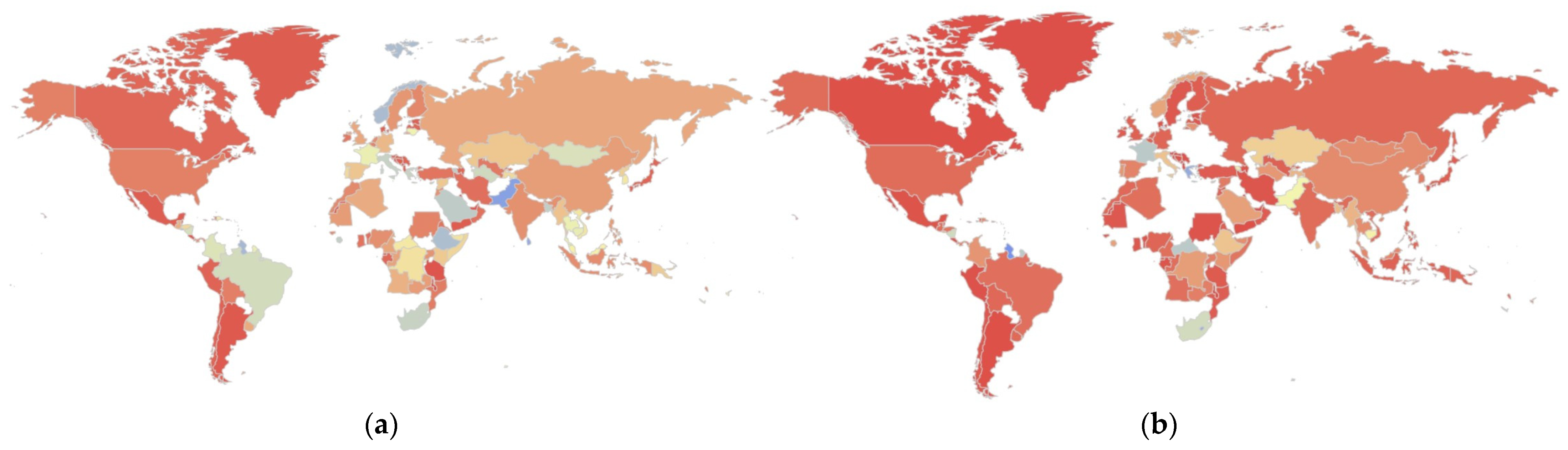 Z. Dvulit et al. analyzed the impact of social, ecological, and economic components on SDG achievement in seven developed countries (Australia, Canada, Germany, the Netherlands, Switzerland, the United Kingdom, and the United States) for 2000–2022 using correlation and regression analysis. The study found strong positive correlations between all three components and the SDG Index, with variations across countries—the Netherlands showed the strongest social component correlation, while Canada demonstrated the strongest ecological component relationship. A critical finding revealed that aggregated data analysis significantly reduced coefficients of determination (R2) compared to individual country models, demonstrating the limitations of generalized approaches and confirming the necessity of country-specific analysis and tailored strategies sensitive to each nation’s unique conditions, strengths, and weaknesses in sustainable development [24]. Dvulit’s finding about reduced R2 in aggregated analysis supports our classification approach: rather than assuming uniform relationships across all countries, we group nations by development level and identify which SDGs differentiate these groups—effectively addressing the heterogeneity challenge through systematic categorization.
