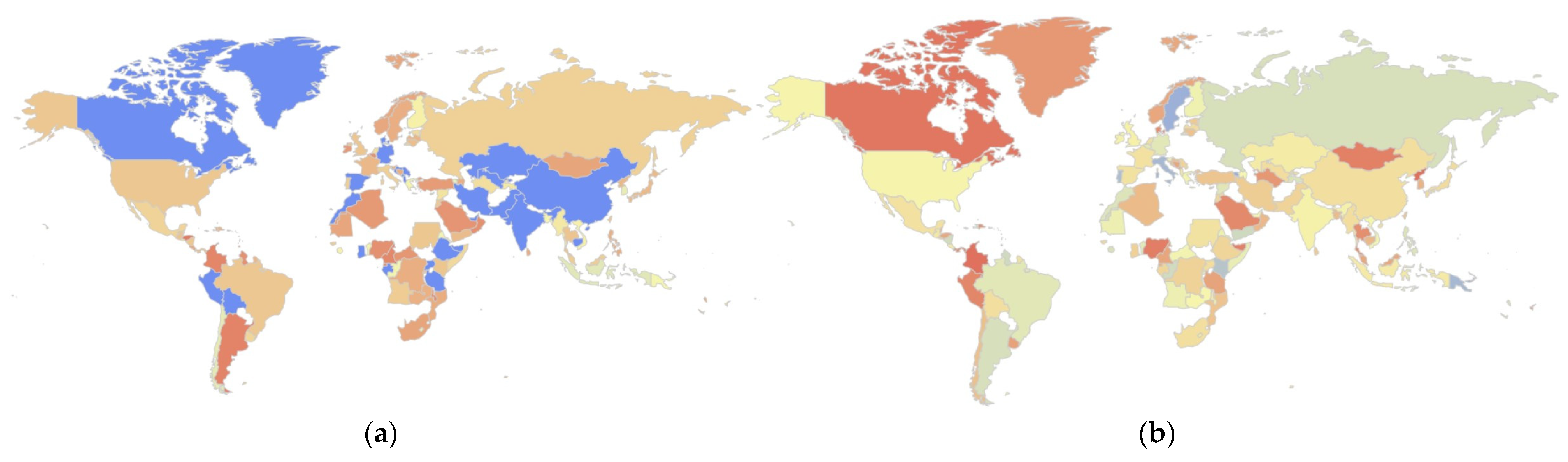 A critical finding in the literature emphasizes that relationships between sustainability dimensions vary significantly across development contexts, necessitating classification models that can differentiate country groups—precisely what our discriminant and Random Forest approaches provide. L.C.T. dos Santos et al. developed and applied the Five Sectors Sustainability Model (5SEnSU) as a multi-criteria decision-making tool to assess sustainability performance across 164 countries over the period 2000–2022. The study classified nations into sustainability levels based on environmental, economic, and social indicators, revealing that few countries maintained top rankings throughout the timeframe, primarily due to environmental and economic challenges, while 58 countries demonstrated medium sustainability levels and 12 consistently ranked low. The research identified critical tensions among the three dimensions of sustainability and demonstrated that, despite the United Nations’ fundamental role and international cooperation frameworks, local initiatives remain essential for advancing global sustainability. The authors concluded that slow progress reflects inherent conflicts between economic development and environmental preservation, underscoring the need for more robust pro-environmental policies to balance these competing demands [23].