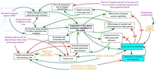The global space economy, valued at approximately USD 400–630 billion (depending on definitional scope), is projected to expand rapidly, crossing USD 1 trillion as early as 2032 and reaching up to about USD 1.8 trillion by 2035. This growth has been driven by a surge (a roughly twelvefold increase) in satellite launches over the past decade, transforming Earth’s orbits into an increasingly congested domain plagued by space debris. The proliferation of space junk poses an escalating threat to orbital sustainability, yet effective governance mechanisms remain limited. This paper examines why conventional solutions for managing common-pool resources (command-and-control regulation, Pigouvian taxes, private property rights, allocation of tradable permits, and horizontal governance regimes) are not fully effective or are difficult to implement in addressing the orbital debris problem. Using a system dynamics perspective, the study qualitatively maps hypothesized feedback mechanisms shaping orbital expansion and space debris accumulation. It suggests that, under the assumed causal structure, reinforcing growth loops associated with geopolitical rivalry and commercial cost reductions linked to the New Space paradigm currently dominate over delayed balancing effects arising from the finite nature of orbital space, whose regenerative capacity is progressively degraded. There exists a threshold of exploitation beyond which orbital space effectively behaves as a non-renewable resource. The analysis suggests that, without binding international coordination, meaningful intervention may require the occurrence of a catalyzing crisis—e.g., a localized cascade of orbital object collisions that could transform stakeholder perceptions and enables active debris removal deployment. Full article
