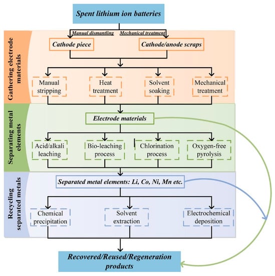 - Xiao, J.; Li, J.; Xu, Z. Challenges to Future Development of Spent Lithium Ion Batteries Recovery from Environmental and Technological Perspectives. Env. Sci Technol 2019. [Google Scholar] [CrossRef] [PubMed]
