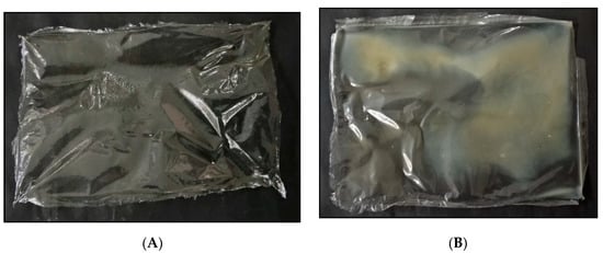 As the known characteristic of a biopolymer, the composite films may absorb moisture from the surrounding environment. The amount of moisture absorbed by the film from the surrounding environment occurred until equilibrium was attained for the moisture content of the films. In this study, CEPS and CEPSPDO composite film moisture content was measured by drying the 20 mm × 20 mm square pieces of films in an oven at 105 °C until constant weight was attained. The initial weight of the film was denoted as Ai and the final dry weight as Af. The moisture content was calculated using Equation (2).