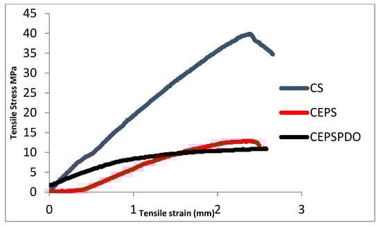 Stress-strain curves of composite blend films chitosan (CS), chitosan exopolysaccharide (CEPS), and chitosan EPS and 1,3-PDO (CEPSPDO).