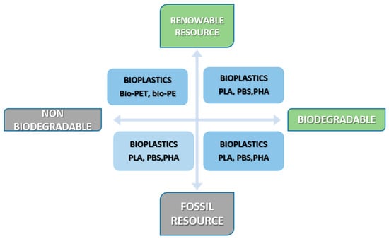 Where biomass is used as the renewable raw material, to obtain polymers, these types of polymers are referred to as bioderived [10]. However, not all are biodegradable. Bioplastics are a family of plastics that can be divided into two categories, biodegradable and non-biodegradable [11]. At this point, we have considered that some petrochemical polymers are biodegradable and that not all bioderived polymers will biodegrade.