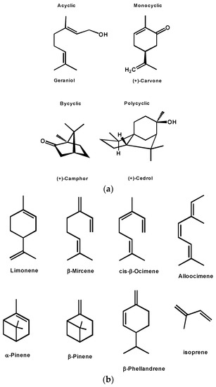 (a) Different classes of terpenes. (b) Common terpenes and terpenoids.