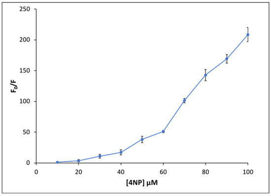 Stern–Volmer plot for fluorescence emission quenching of NaFl at different 4NP concentrations.
