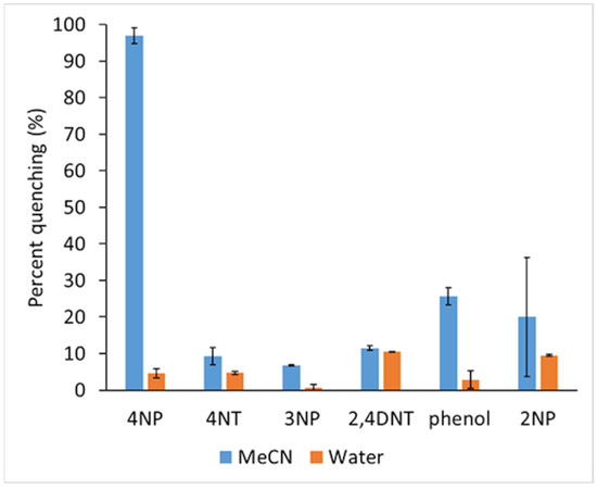 The quenching percentage for all nitroaromatics was calculated using Equation (3)