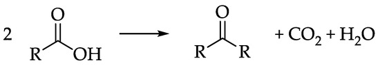 - Renz, M. Ketonization of Carboxylic Acids by Decarboxylation: Mechanism and Scope. Eur. J. Org. Chem. 2005, 2005, 979–988. [Google Scholar] [CrossRef]