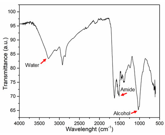 FTIR spectra were obtained for the granular biomass treated at 100 °C, as shown in Figure 2.