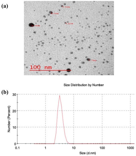 (a) TEM image and (b) dynamic light scattering measurement of as-obtained BSA@CuNCs.