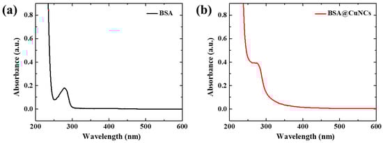 UV-vis absorption spectrum of (a) BSA and (b) BSA@CuNCs.