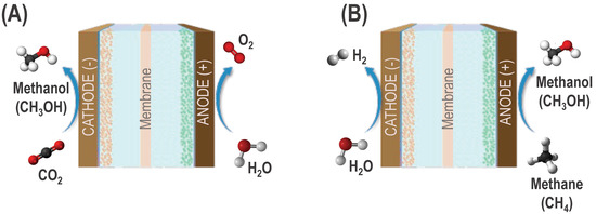 - Lee, B.; Hibino, T. Efficient and selective formation of methanol from methane in a fuel cell-type reactor. J. Catal. 2011, 279, 233–240. [Google Scholar] [CrossRef]