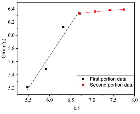 Intraparticle diffusion model plot for adsorption of hexavalent chromium from aqueous solution.