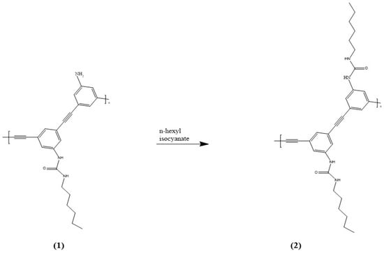 As previously discussed, the N-H bond is commonly used for anion-sensing purposes. This is highlighted in the literature through the usage of urea moieties. Due to the structure having two N-H bond locations, it makes them feasible anion sensors with high selectivity and sensitivity. However, their incorporation into aromatic moieties hinders their application in aqueous or semi-aqueous solutions, which poses a challenge for current anion sensor synthesis. In 2021, Li et al. synthesized urea-bearing polyphenyleneethynylenes (Poly-1, Poly-2, 1 and 2, respectively) for anion sensing [192]. Commensurate with the aggregation abilities of aromatic compounds, 1 (Poly-1) illustrated self-assembly in water and DMF but remained soluble in a 1:1 (v/v) DMF–water mixture. Both probes are illustrated in Figure 1 [192]. However, upon reaction with n-hexyl isocyanate, the solubility of 1 (Poly-1) increased to create 2 (Poly-2). Here, 1 (Poly-1) showed significant aggregation due to the amino groups present providing more favorable hydrogen bond interactions. Upon the addition of various anions, a fluorescence peak appeared at 468 nm in each case. However, a trend of decreasing intensity was observed as CN− > N3− > ACO− > F− > none > Cl− > I− > Br− [192].