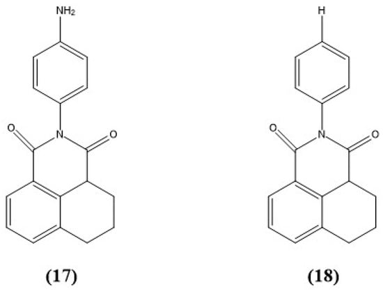 Due to the high water solubility, anion sensing of these probes was tested. Pundit and Das focused heavily on 17 (Nap-1), which will be the focus of this discussion as well. Compound 17 (Nap-1) exhibits a fluorescence peak at 398 nm with weak intensity when excited at 350 nm. This was attributed to the intramolecular PET from the amine lone pairs to the napthalimide fluorophore. Subsequently, when anions coordinate with the lone pair electrons, the donor potential is decreased and slows down or stops the PET; this corresponds to the “turn-on” fluorescence. With various anions tested, upon the addition of SO42−/HSO4− to 17 (Nap-1), an increase in intensity of approximately 60–98% was observed at 398 nm; see Figure 22 [209].