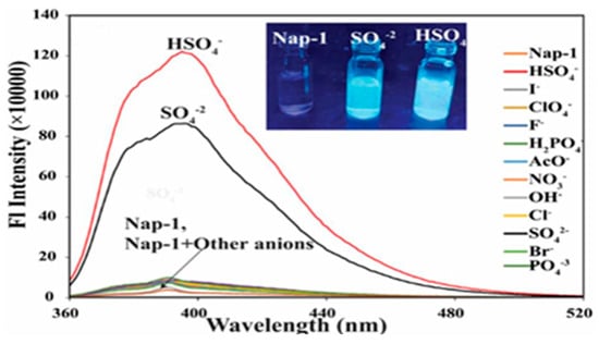 Fluorescence spectra of aqueous 17 (Nap-1) upon addition of various anions. Reprinted with permission from ref. [209].