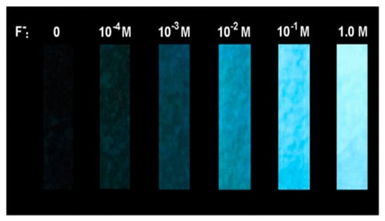 - Sui, B.; Kim, B.; Zhang, Y.; Frazer, A.; Belfield, K.D. Highly Selective Fluorescence Turn-On Sensor for Fluoride Detection. ACS Appl. Mater. Interfaces 2013, 5, 2920–2923. [Google Scholar] [CrossRef]