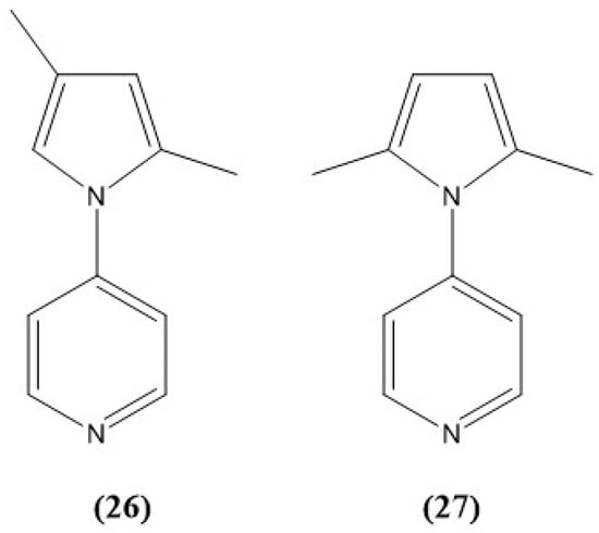 - Thomas, M.E.; Schmitt, L.D.; Lees, A.J. A New, Rapid, Colorimetric Chemodosimeter, 4-(pyrrol-1-yl)pyridine, for Nitrite Detection in Aqueous Solution. ACS Omega 2024, 9, 37278–37287. [Google Scholar] [CrossRef]