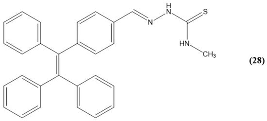 In 13 (TPE-QN), a red emission is observed in aqueous media due to the formation of nanoaggregates; this is due to the highly conjugated structure and high potential of π-stacking. Upon the addition of I-, the emission of 13 (TPE-QN) is quenched from electrostatic interactions and collisions between the aggregates and I- with a corresponding limit of detection of 22.6 nM. This system is another example of a “turn-off” sensor, as seen in previous examples.