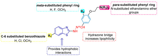 Design of novel 2-hydrazone-bridged benzothiazole derivatives.