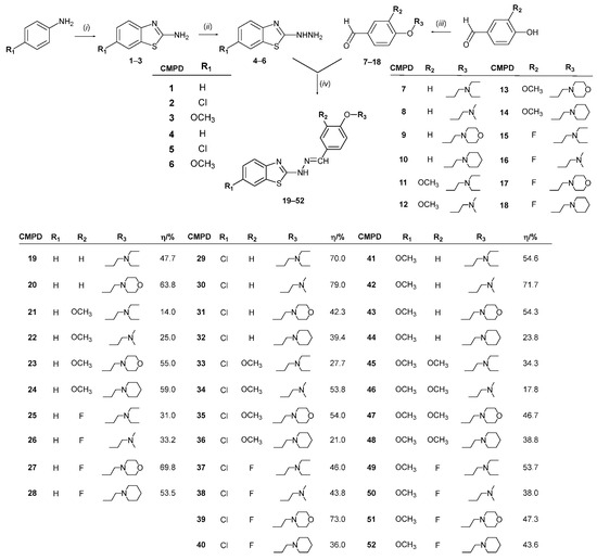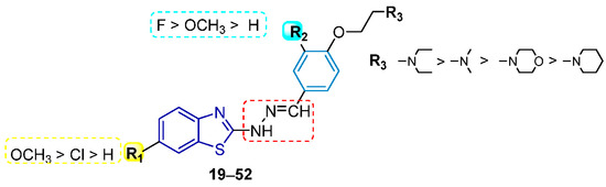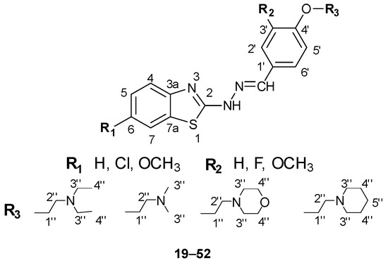 2.2.3. General Procedure for the Preparation of 2-hydrazonylbenzo[d]thiazole Derivatives 19–52