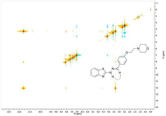 Hydrazones are an important class of organic compounds characterized by the azomethine group (–NHN=CH) [25], which enhances lipophilicity and facilitates cellular absorption [26]. Literature reports indicate that linking the benzothiazole core with a hydrazone bridge yields compounds with potent antitumor and antibacterial properties [27,28,29,30]. Moreover, the acid-sensitive nature of hydrazone bonds makes them valuable in drug delivery systems, particularly for targeting tumor microenvironments where acidic pH accelerates hydrolysis [31,32,33].