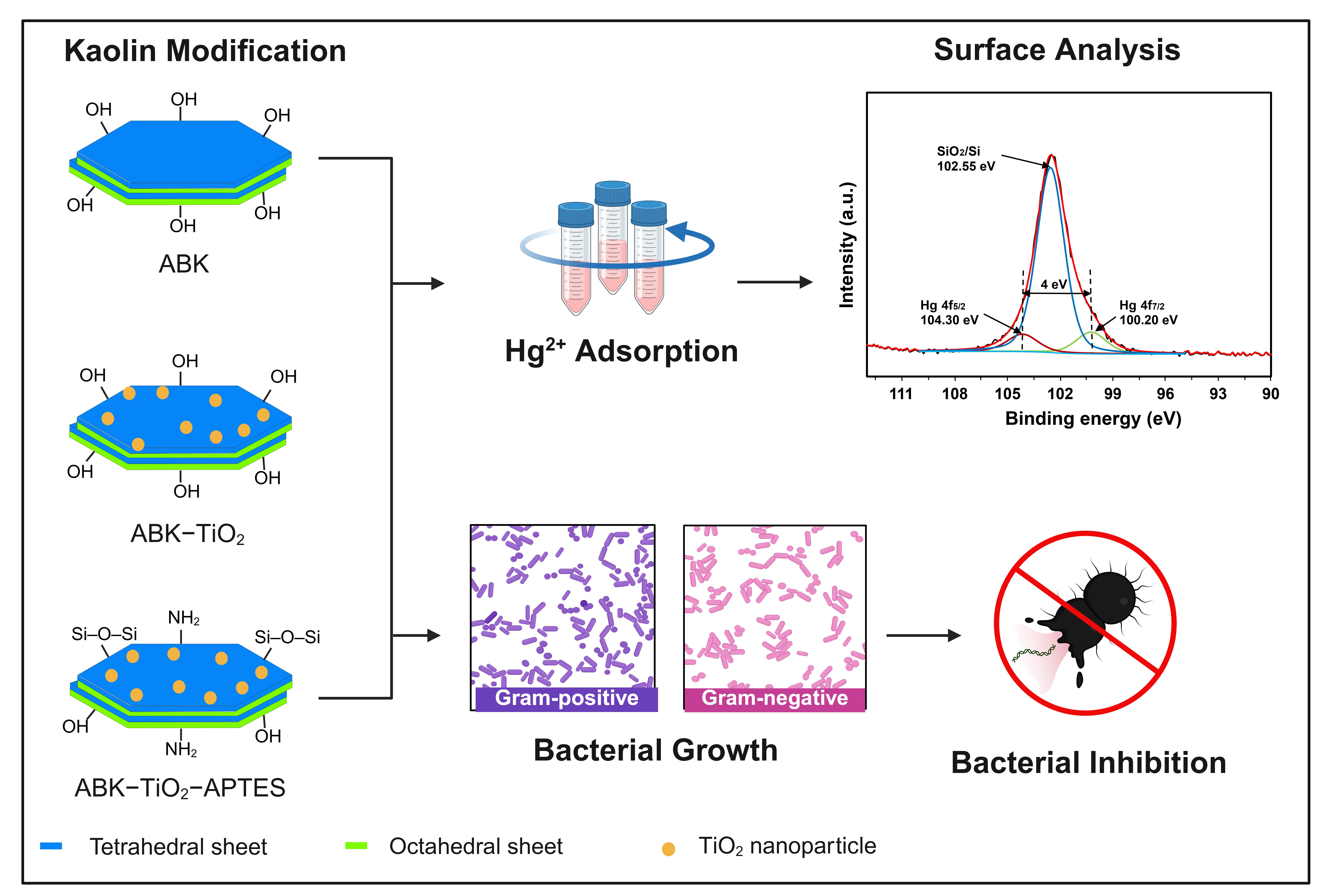 Mercury Removal and Antibacterial Performance of A TiO2–APTES Kaolin Composite