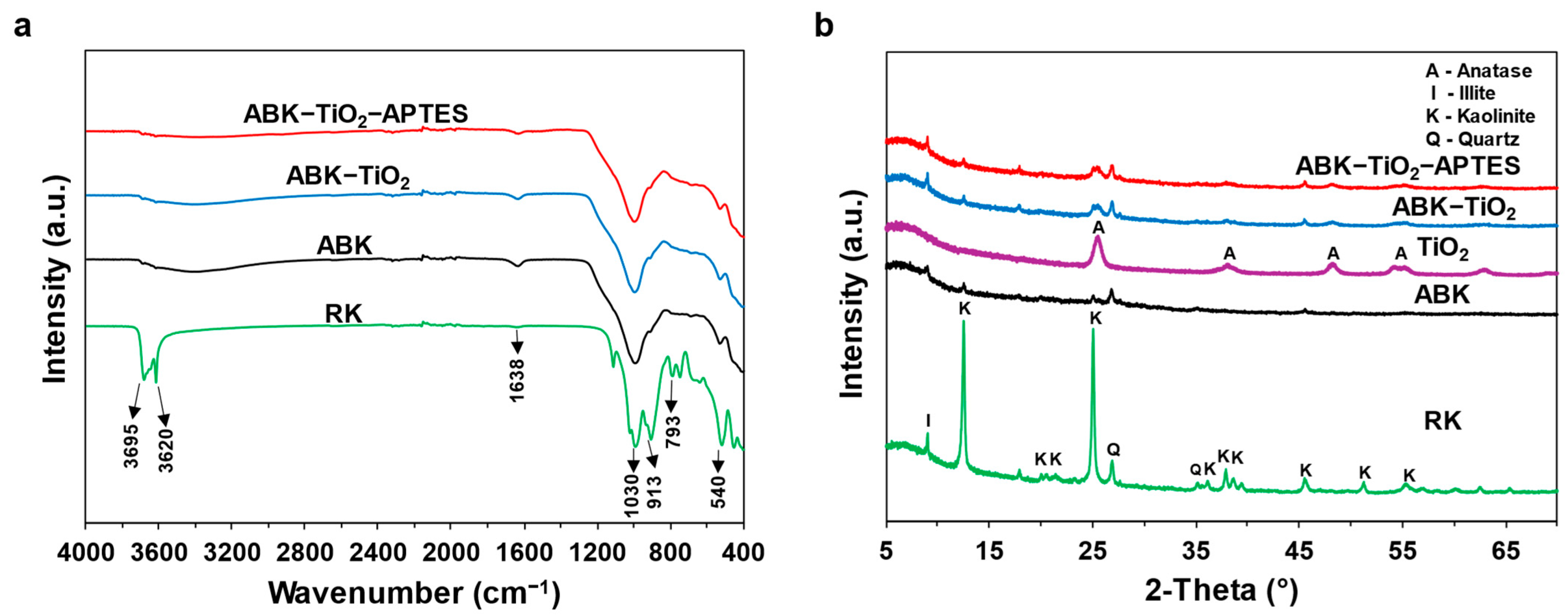 2.2.2. TiO2 Loading and APTES Grafting on Kaolin