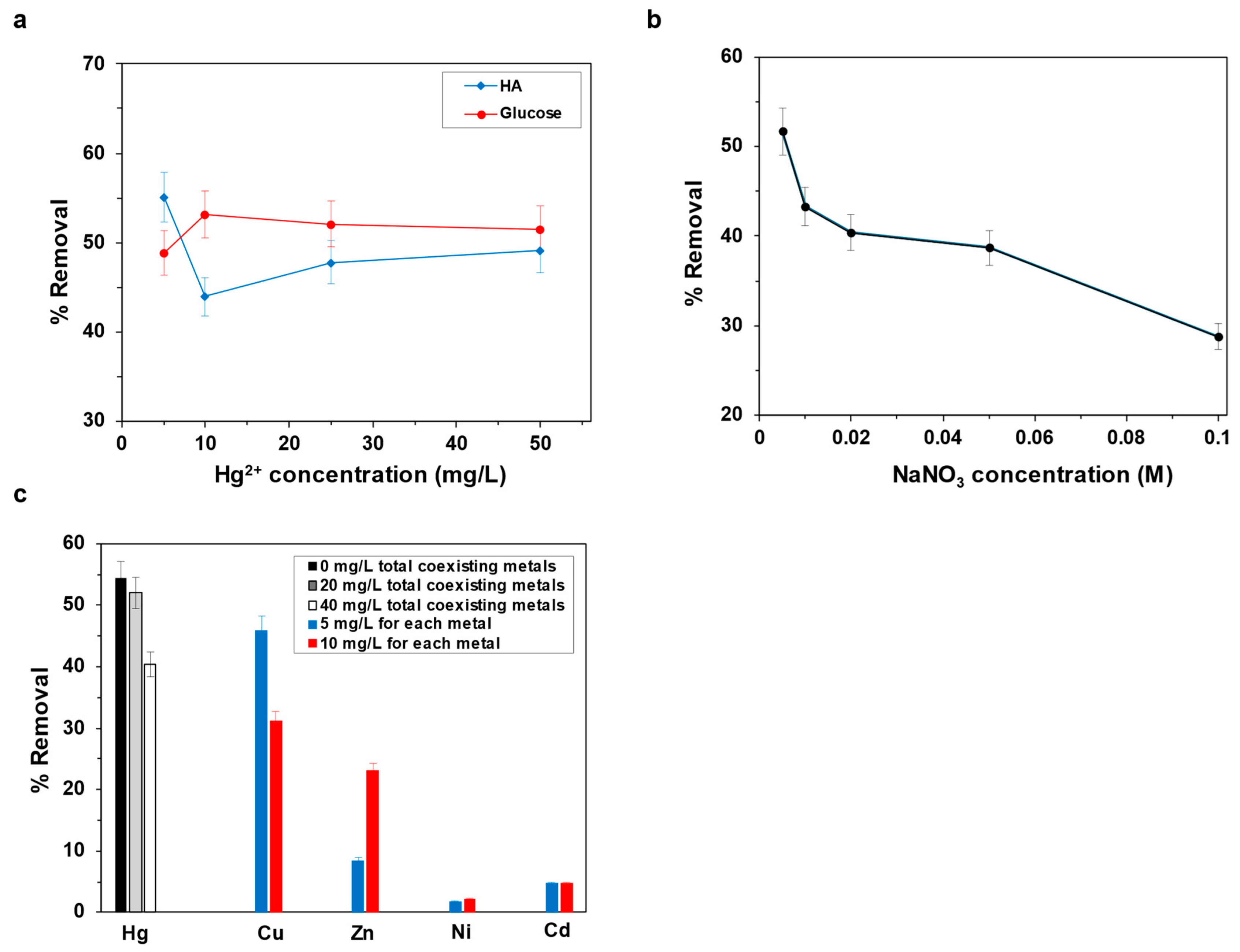 - Huang, Y.; Xia, S.; Lyu, J.; Tang, J. Highly Efficient Removal of Aqueous Hg2+ and CH3 Hg+ by Selective Modification of Biochar with 3-Mercaptopropyltrimethoxysilane. Chem. Eng. J. 2019, 360, 1646–1655. [Google Scholar] [CrossRef]