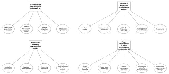 | ‘I’m afraid of seeing someone who doesn’t know HD’: barriers to accessing psychological support | Cost of private therapy Distrust in public healthcare Lack of knowledge about HD Preconceptions around therapy Illness denial |