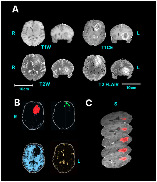 - Bakas, S.; Akbari, H.; Sotiras, A.; Bilello, M.; Rozycki, M.; Kirby, J.; Freymann, J.; Farahani, K.; Davatzikos, C. Segmentation Labels for the Pre-Operative Scans of the TCGA-GBM Collection; National Institutes of Health: Bethesda, MD, USA, 2017. [Google Scholar] [CrossRef]