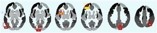 - Grady, C.L.; Maisog, J.M.; Horwitz, B.; Ungerleider, L.G.; Mentis, M.J.; Salerno, J.A.; Pietrini, P.; Wagner, E.; Haxby, J.V. Age-related changes in cortical blood flow activation during visual processing of faces and location. J. Neurosci. 1994, 14, 1450–1462. [Google Scholar] [CrossRef]