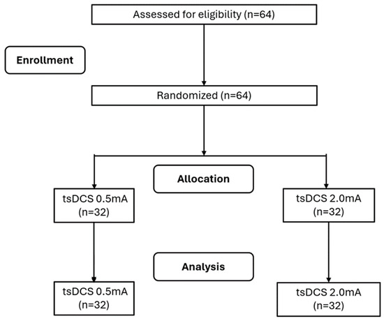 Flow diagram of the participants (2024). tsDCS: transcutaneous direct current stimulation.