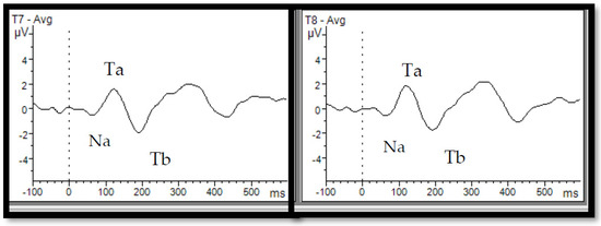 Tb is the third component of the T-complex and indexes auditory processing in secondary auditory areas [26,28,40]. Taylor et al. (2003) reported that the dyslexia group had a shorter latency of Tb compared to healthy controls [58]. This faster brain response may reflect the superficial and inappropriate processing of sound in the dyslexic population [58]. Moreover, this abnormally short latency of Tb was observed only in the right hemisphere [58]. Such findings align with neuroimaging studies reporting greater right- than left-hemisphere activity in dyslexia, which leads to faster but less accurate processing [73,74].