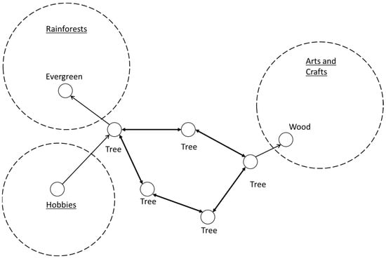 In Figure 1, for example, there is a ‘tree’ feature that is distributed. If the between-node lengths are the same, then they should synchronize and support each other. If there is a brain search about hobbies, then that signal type is sent to the tree feature (‘Find’). One tree concept instance extends into the rainforests domain and another extends into arts and crafts (‘Compare’) and will activate depending on which signals are sent. Then, if there are other criteria from other places, where they converge can determine the result. The vertical concepts can remain distinct but are also joined by the base ‘tree’ concept.
