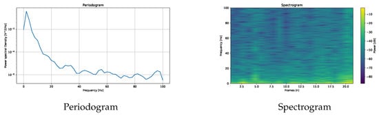 In addition to time-series plots, SPEED supports frequency domain analysis through Fourier transforms, visualising both periodograms and spectrograms using Welch’s method, as shown in Figure 8, to analyse the signal frequency and the power spectral density. Finally, movement data extracted using Algorithm A2 can be represented as a path graph, exemplified in Figure 9, to visualise gaze or fixation movements. Moreover, some features are available in histogram form, as shown in Figure 1.