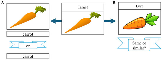 Participants in the Stephan-Otto et al. (2017) [21] study viewed 45 common item names either with or without a corresponding image during the encoding phase. During recall, they were asked whether they had previously seen a picture of each item. Trials in which participants falsely remembered seeing a picture were coded as false alarms. Similarly, Participants in the Muncy & Kirwan (2020) [20] study underwent three phases: a Study phase (categorizing 200 common objects as indoor/outdoor), Test 1 (discriminating between 100 targets and 100 lures), and Test 2 (choosing the correct image from target-lure pairs). Responses were coded as Hits, Correct Rejections (CRs), False Alarms (FAs), or Misses. See Figure 2 below for an example of these tasks.