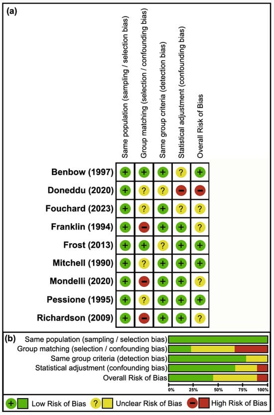 | Current/Former Smoking | 8 | 664/1153 (57.59%) | 1007/2075 (48.53%) | 1.44 (1.25–1.67) | --- | Serious | Low risk | Low risk | Low risk | Very Low ⨁◯◯◯ | Doneddu (2020) [39], Fouchard (2023) [40], Mondelli (2020) [44], Richardson (2009) [46], Frost (2013) [42], Franklin (1994) [41], Pessione (1995) [45], Mitchell (1990) [43] |