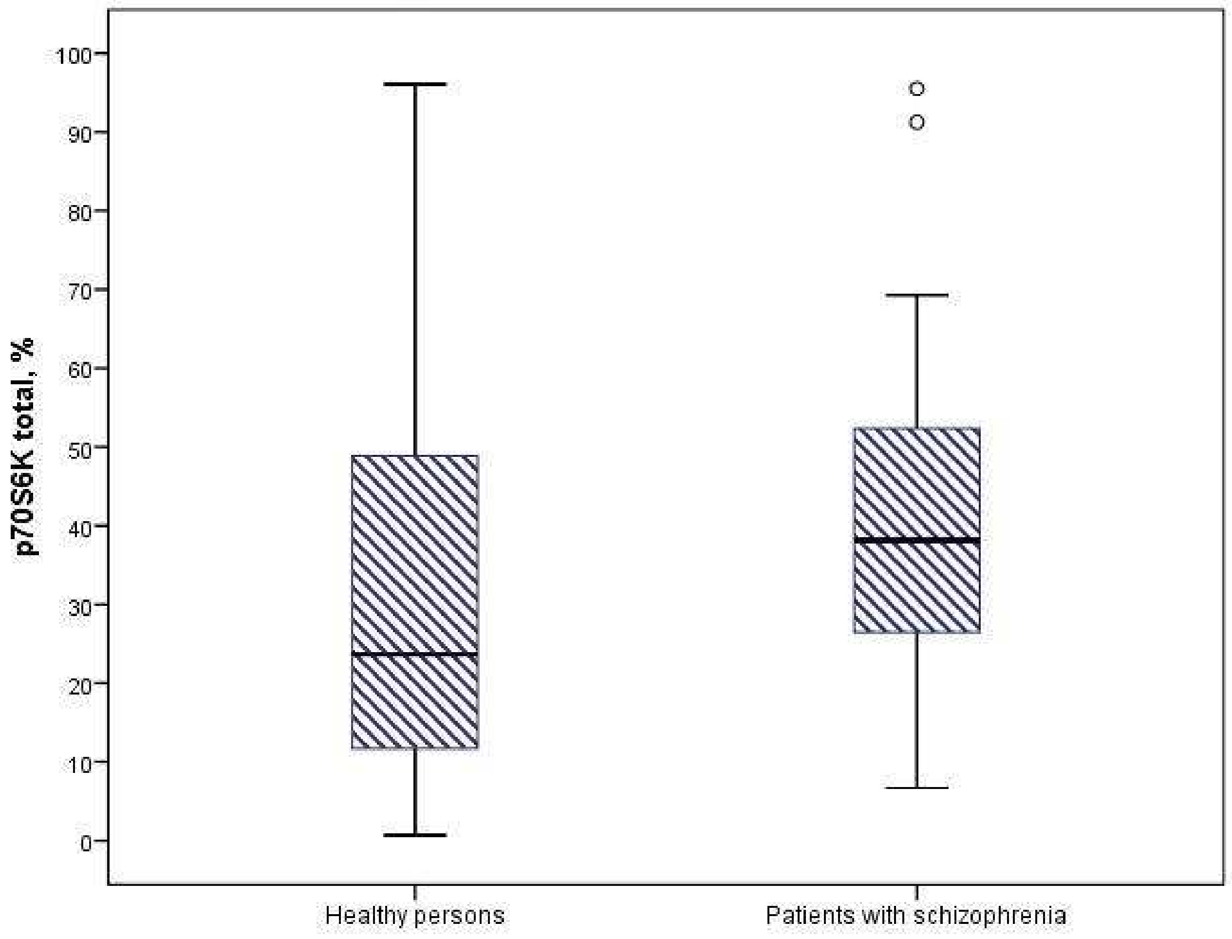 | Protein Kinases, % | Healthy Persons (n = 60) | Patients with Schizophrenia (n = 58) | p-Value |