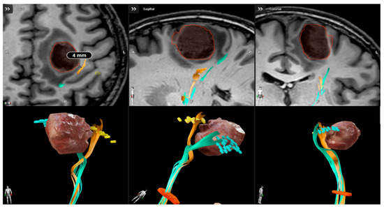 - Luzzi, S.; Simoncelli, A.; Galzio, R. Impact of augmented reality fiber tractography on the extent of resection and functional outcome of primary motor area tumors. Neurosurg. Focus 2024, 56, E3. [Google Scholar] [CrossRef]