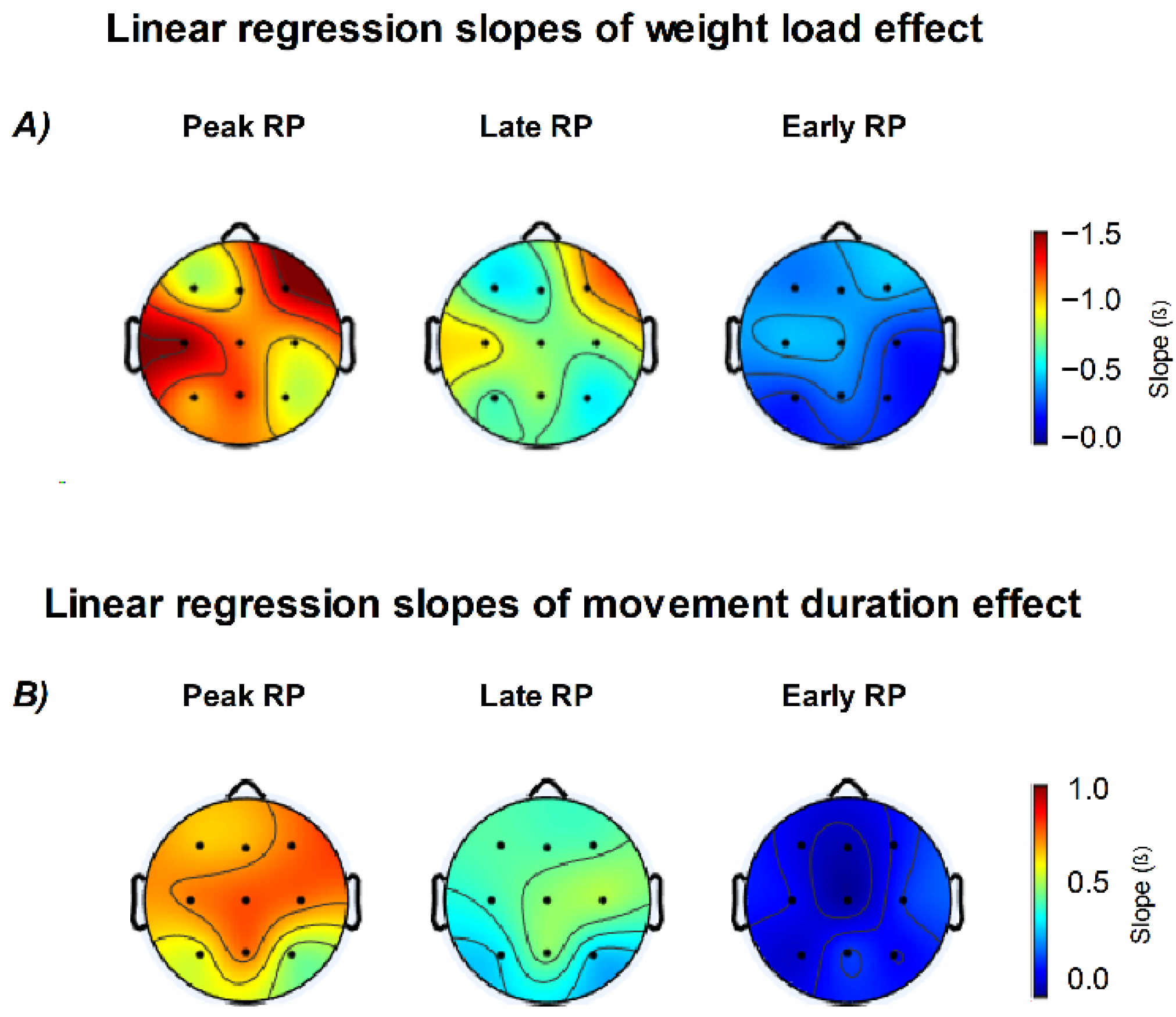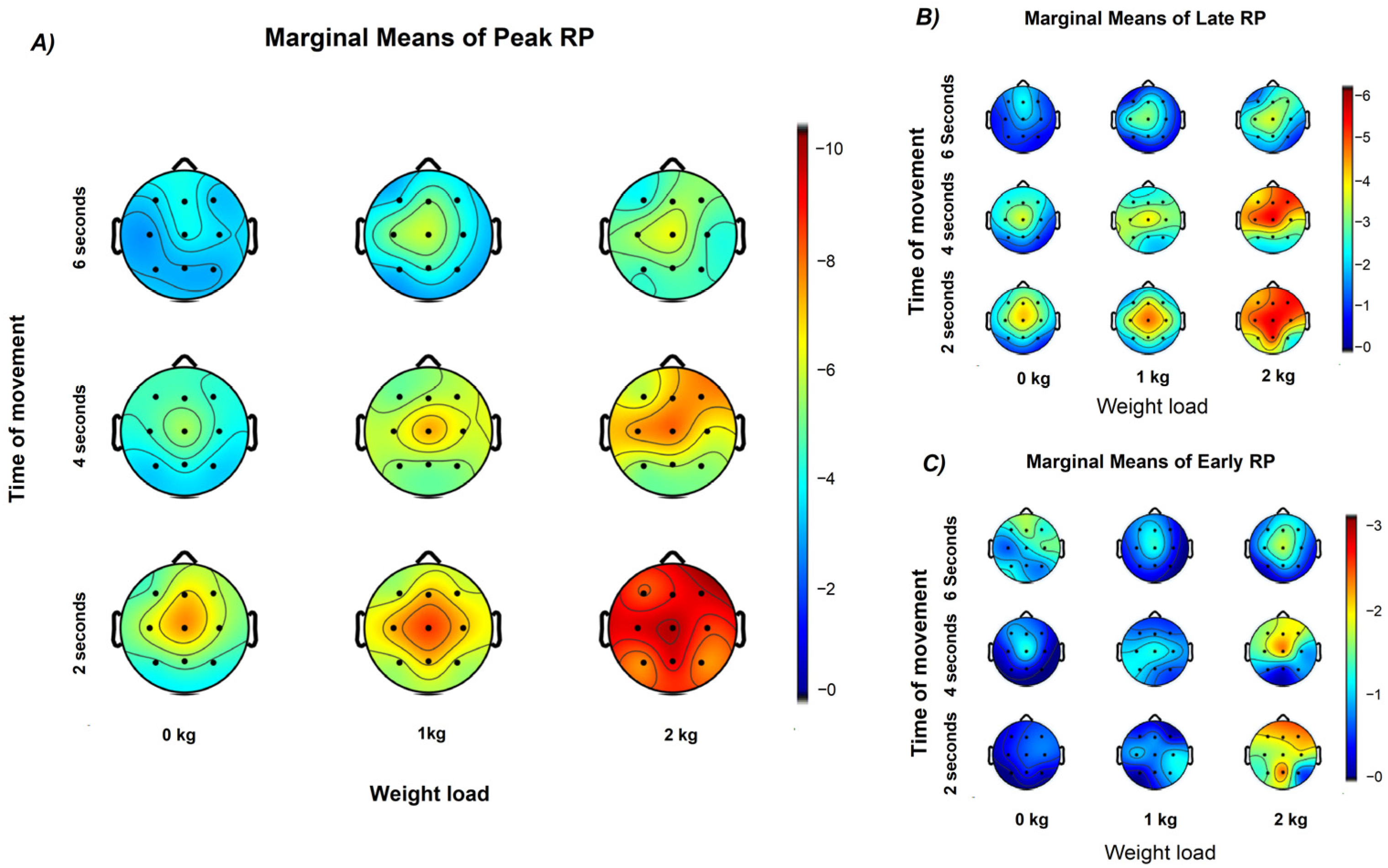 Figure 8). Regarding Early RP, only weight load showed observable effects, especially in central and frontal regions.