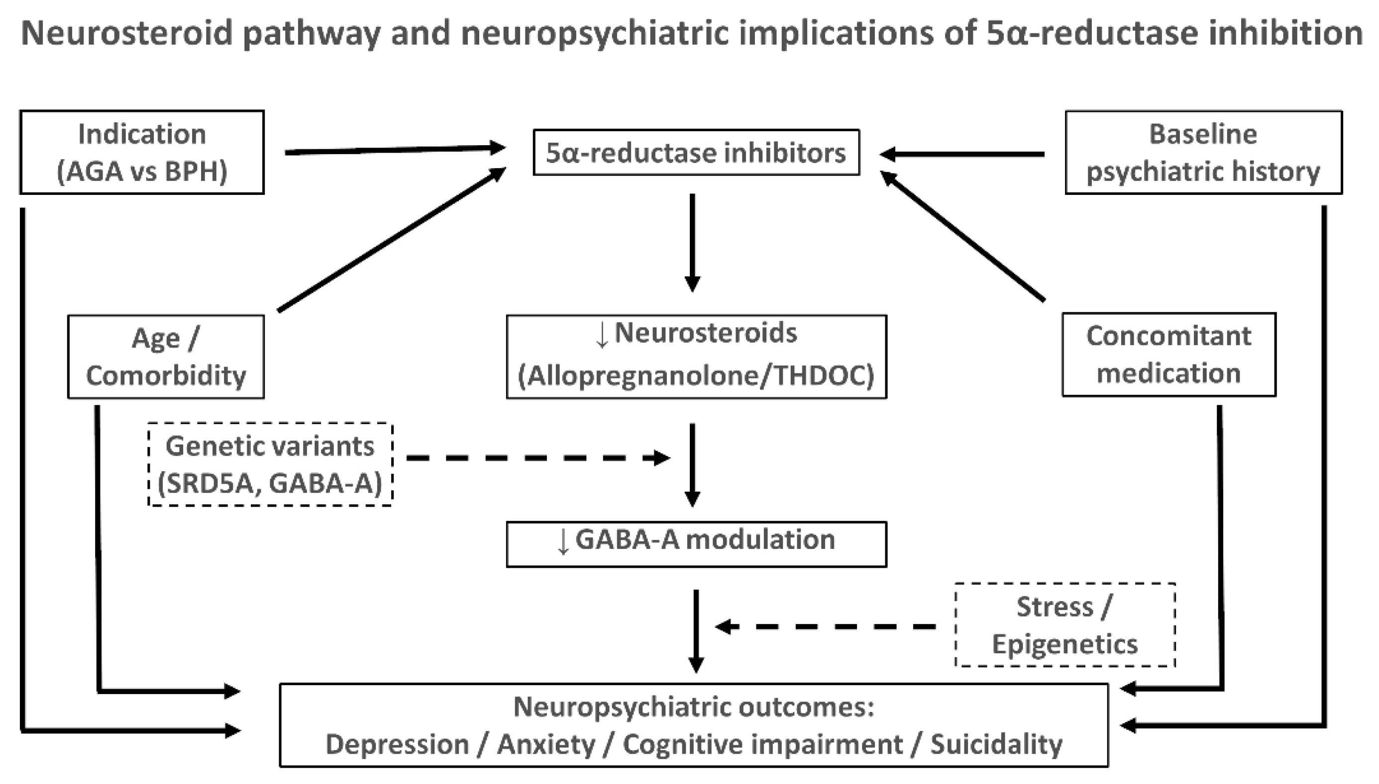 - Association of 5α-R inhibitors (finasteride, dutasteride) with neuropsychiatric symptoms.